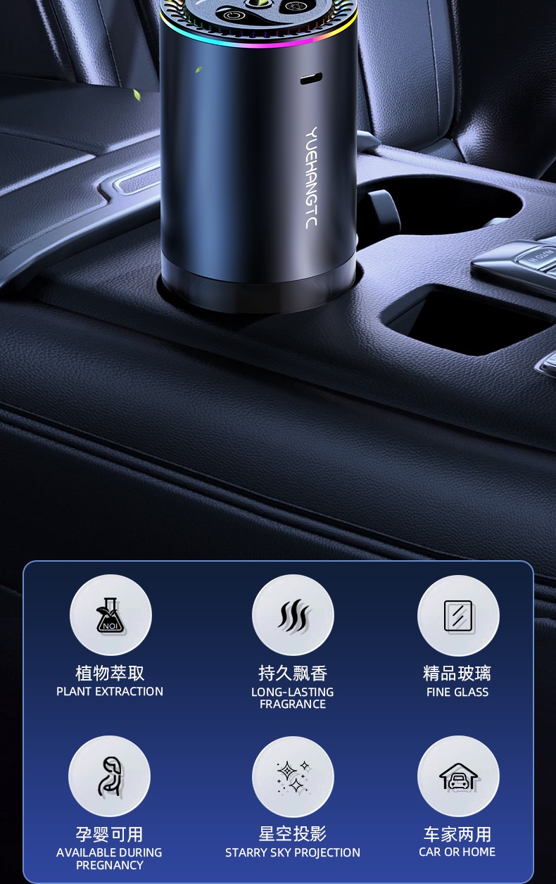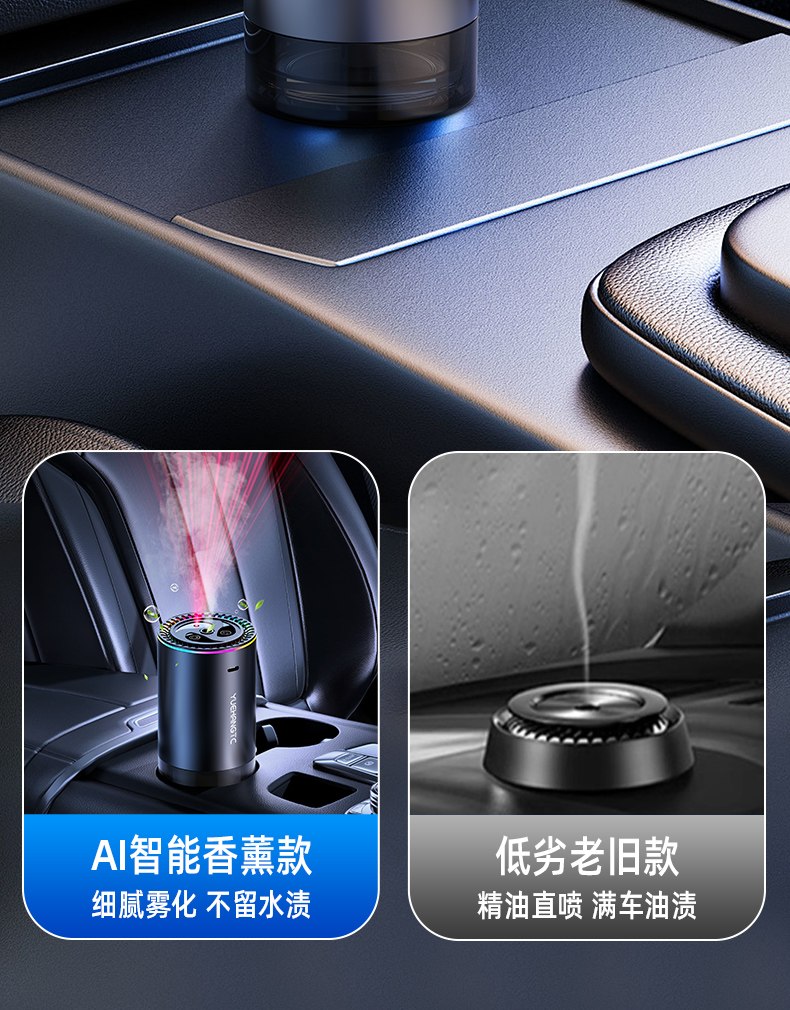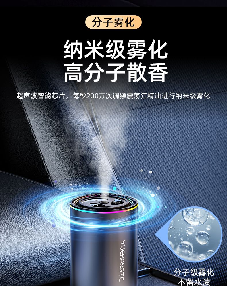 1. Nano lygio atomizuoto polimero aromatą skleidžiantis ultragarsinis intelektualusis lustas, galintis pašalinti aldehidus. Formaldehido šalinimo automobilio aromaterapija su 2 milijonais dažnio moduliavimo virpesių per sekundę, skirta eterinio aliejaus purškimui nano lygiu